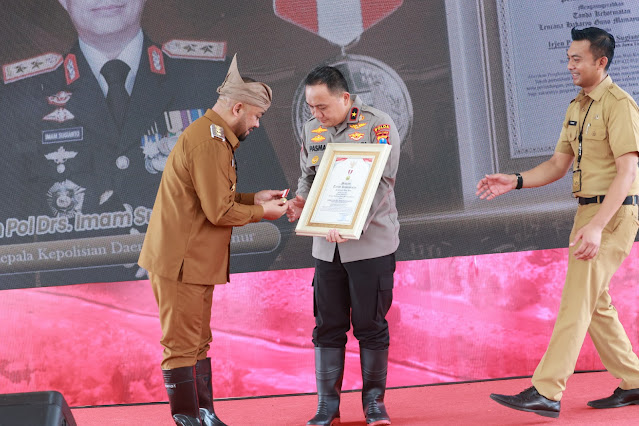 Kota Batu, Kompasone.com – Polda Jawa Timur dinilai berperan besar dalam penguatan ketahanan pangan di Kota Batu. Atas kontribusi tersebut, Pemerintah Kota Batu memberikan penghargaan "Hakaryo Guno Mamayu Bawono" kepada Kapolda Jatim, Komjen Pol Imam Sugianto.